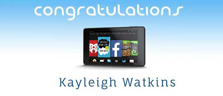 We’d have loved to have given everyone a Kindle, but there can only be one winner. So congratulations go to Kayleigh Watkins! The winner of a brand new Amazon Kindle Fire HD6 Tablet.